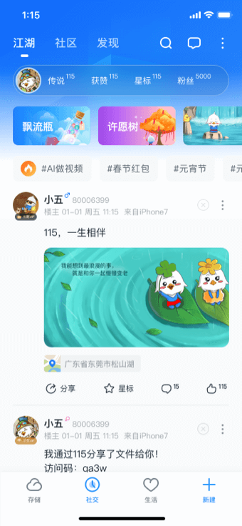 提供江湖、社区等多元化的个人展示及兴趣社交服务。