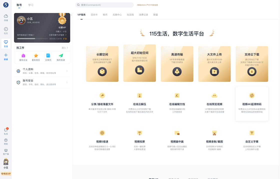 提供找工作、学习、账号管理等丰富便捷的个人生活服务。